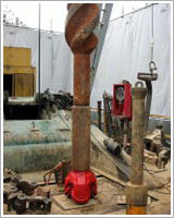 ケーシング挿入準備(ストレーナー加工)後に最終掘削深度までに4段のケーシングパイプを挿入。